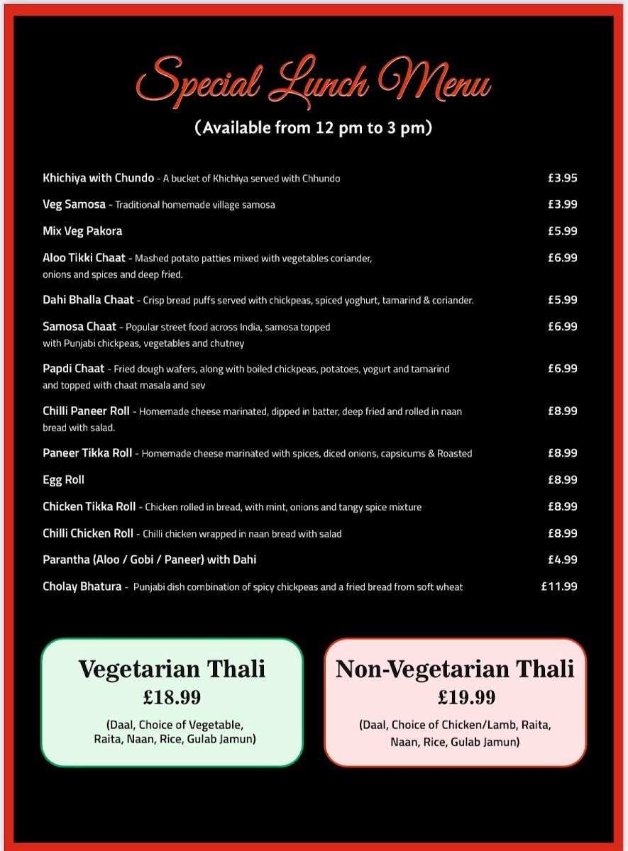 The menu at Kesar II Punjabi Restaurant offers a comforting blend of traditional Indian dishes and casual bites that invite you to relax and savor each moment. Whether you're stopping by for a takeaway or settling in for a leisurely meal, you’ll find options that suit a variety of appetites and occasions.